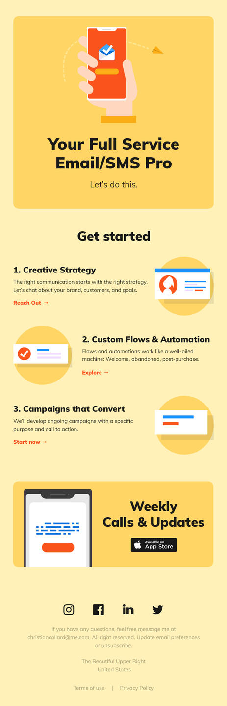 From startup to scale, I've had a hand in all aspects of growth marketing with an inbox-first strategy.As your full-service Email Marketing Manager, I will...✔️ Design a strategy to reach your audience